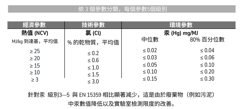SRF 熱值:2,400-5,250 千卡/公斤